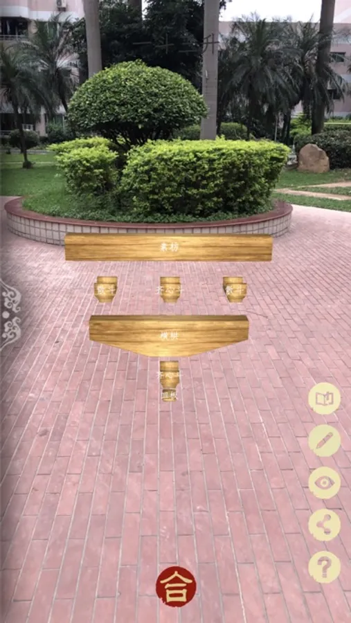 通过我们的AR增强现实,通过用摄像头扫描地面或者桌面,可看到斗栱从现实中升起。