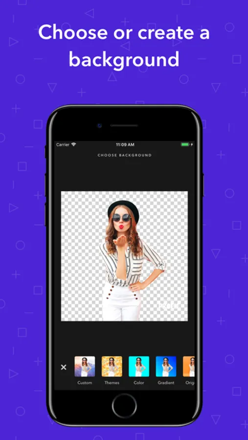 • Add your own background including Colors, Gradients, Custom Photos, and more.