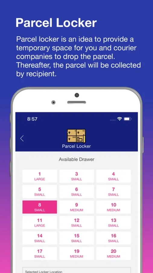 Parcel locker is a temporary space for you and courier companies to drop the parcel. Thereafter, the parcel will be collected by recipient.