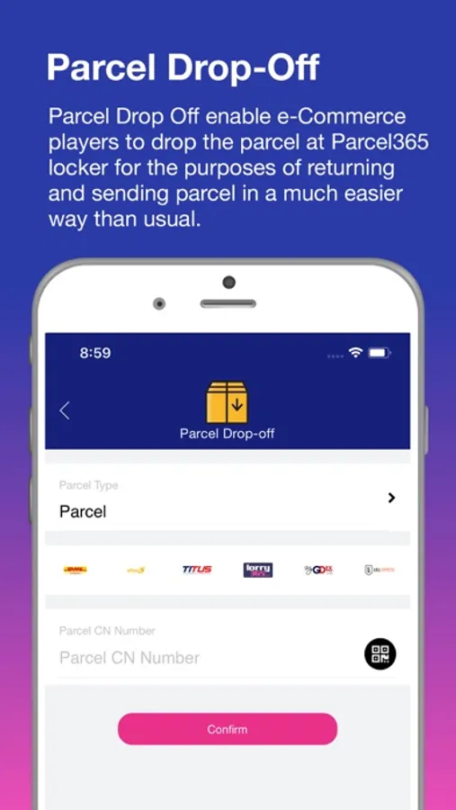 Parcel Drop Off enable e-Commerce players to drop the parcel at Parcel365 locker for the purposes of returning and sending parcel in a much easier way than usual.