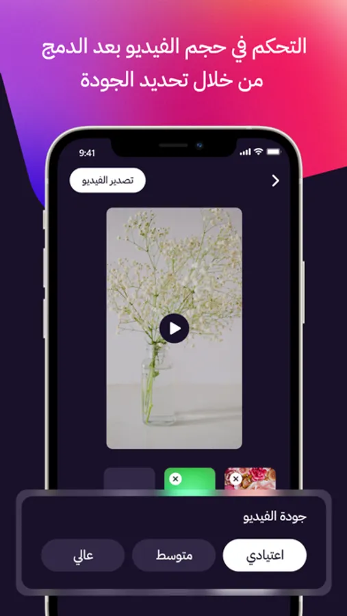 التحكم في جودة الفيديو المدمج بحيث يمكن ان تكون قليلة ومتوسطة وعالية