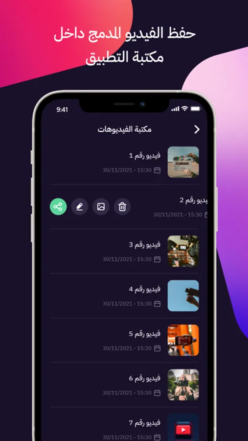 حفظ الفيديو في مكتبة التطبيق