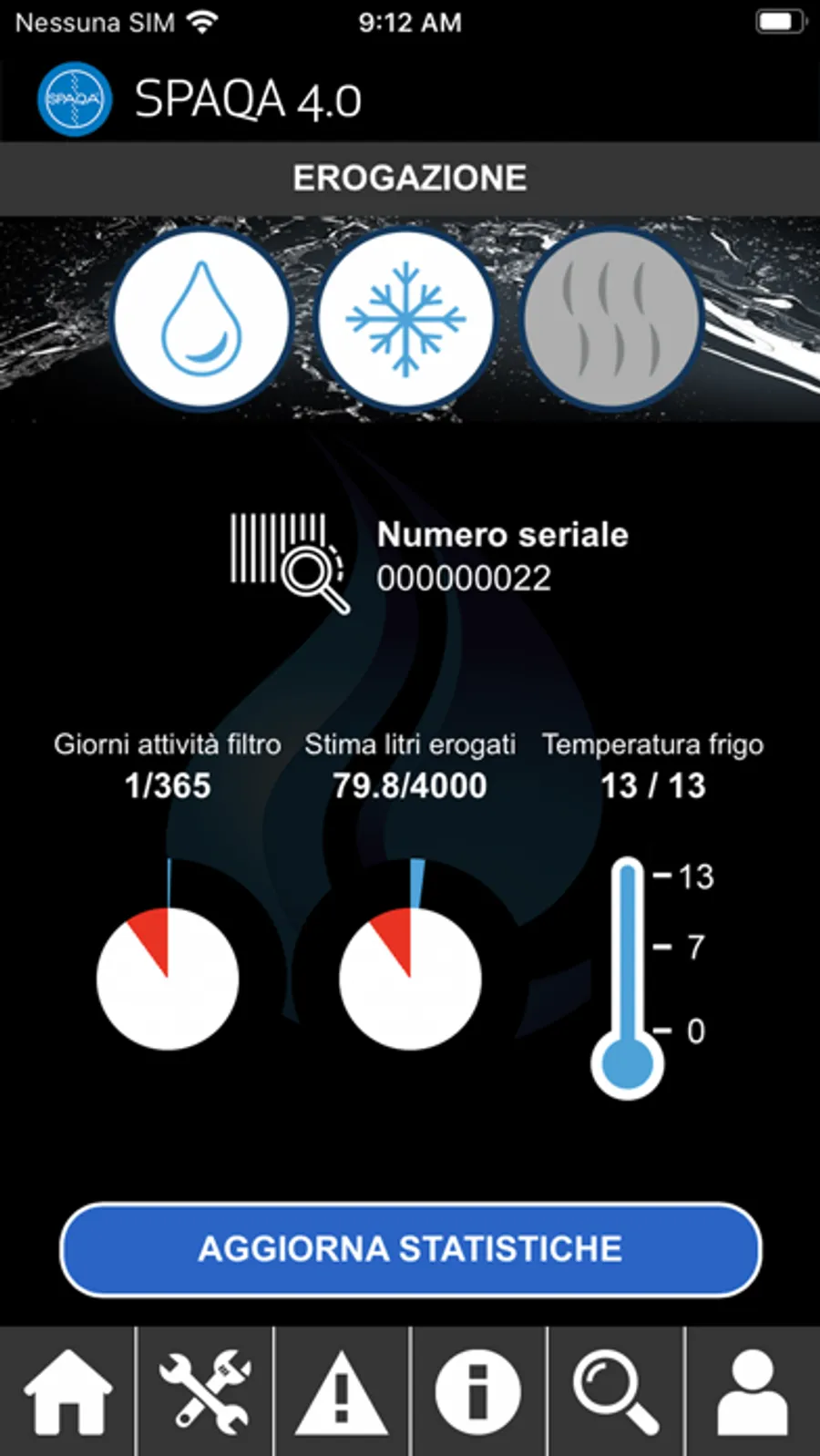 Per funzionare la app necessita di autenticazione tramite account dedicato generato dal distributore del Water dispenser.