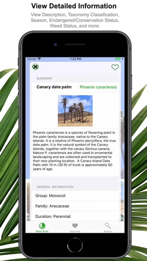With Plant Scan you can view far more detailed information than any other app; Including but not limited to: General Summary, Taxonomy Classification, Season, Endangered/Threatened Status, Weed Status, and much more. If you see a plant that you want to save, you can add the Plant to your Favorites simply by pressing the Heart button. And with the Search function, you can manually Browse or Search through our massive database of Plants. With all these features Plant Scan provides a superior Plant Identification experience all while being super easy to use!