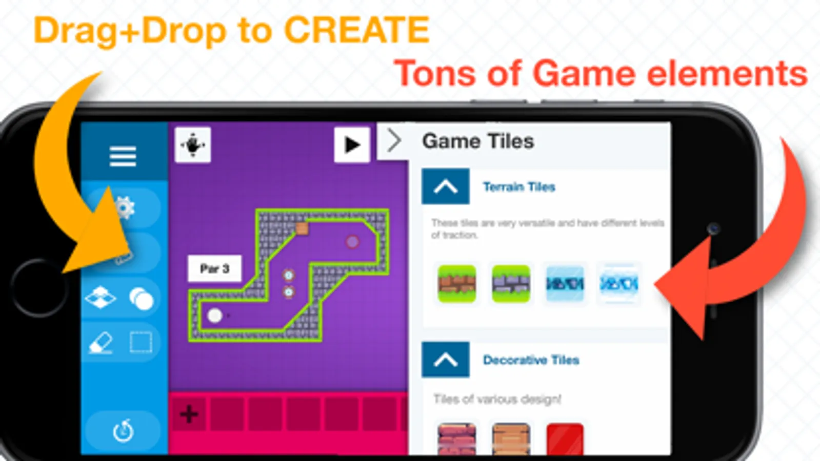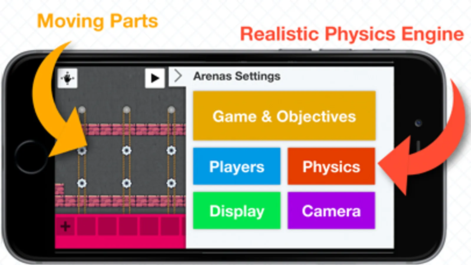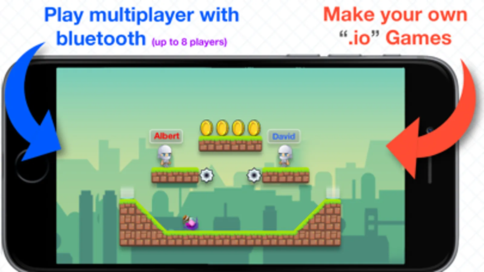 Arenas has a simple drag-and-drop style game editing engine, a built in realistic physics engine, bluetooth multiplayer support (so you can make a ".io" game), plain-English "rules" for custom logic, and many configurable game settings that are common among most popular mobile games!