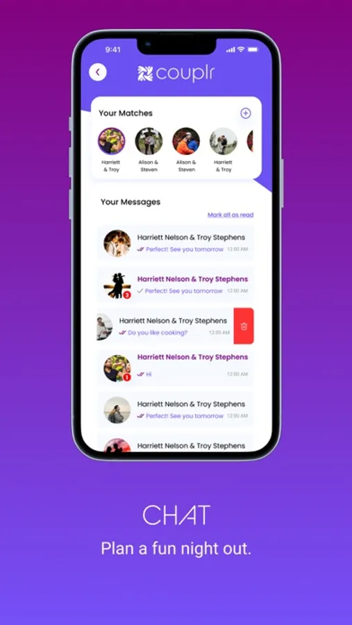 Couplr is the first-in-the-market social networking mobile application on a mission to change how couples find other couples nearby to build platonic friendships. Through the similar concept of online dating, this double dating platform allows couples to create a joint account with dual profiles where they enter in their personal demographics and preferences. The profiles are then matched on the backend based on input and served to the consumer. The consumers then have the option to connect or pass on the fed couple profile. Operationally, it works very similarly to current online dating platforms.
