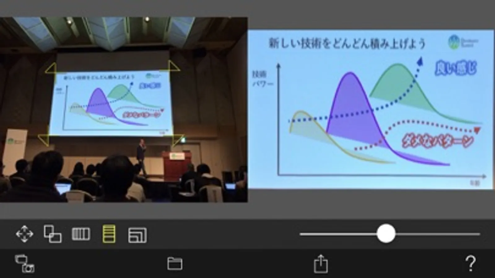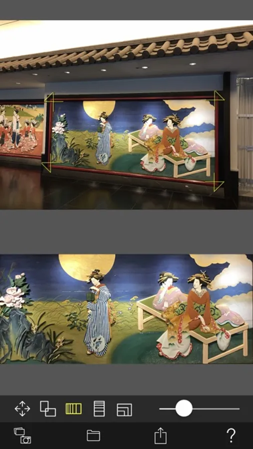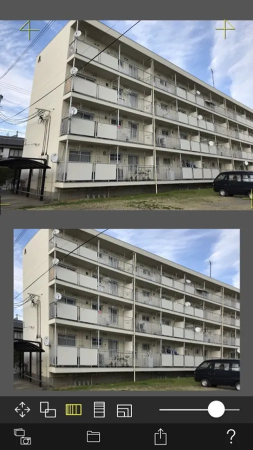 However, with this app, even photos taken from an oblique direction can be converted to rectangular images viewed from the front.
