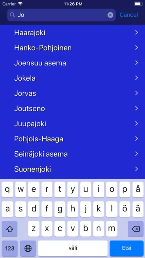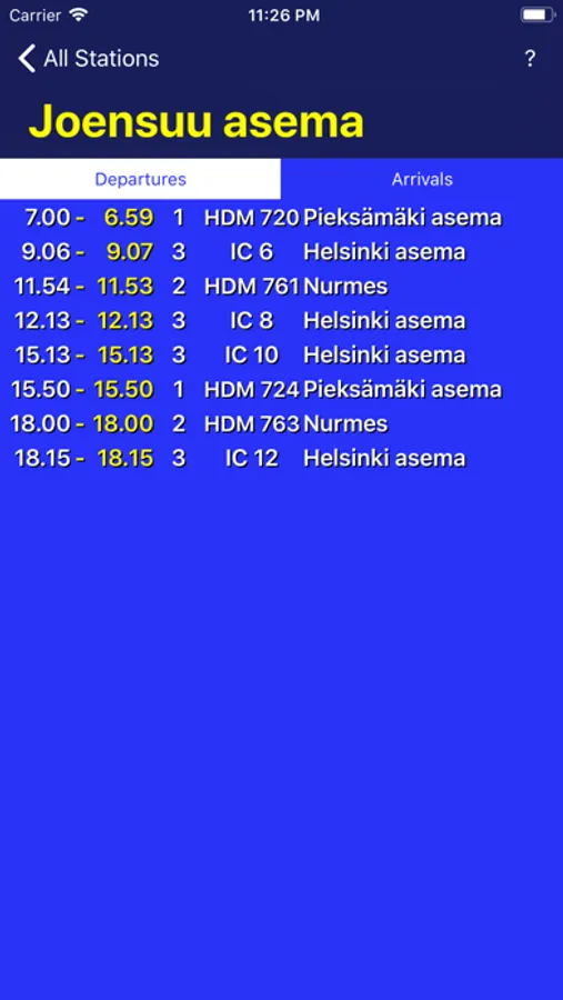 @station lets you view the departure and arrival times of long-distance trains for every train station in Finland. Simply search for and select your favourite station and view all of the departures and arrivals for the current day. It's just like being at the station!