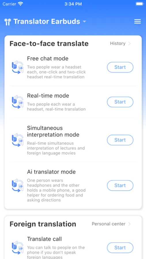 Voice translation headset app can easily turn ordinary Bluetooth headset into a voice conversation headset with translation function, support any brand and model of Bluetooth headset.