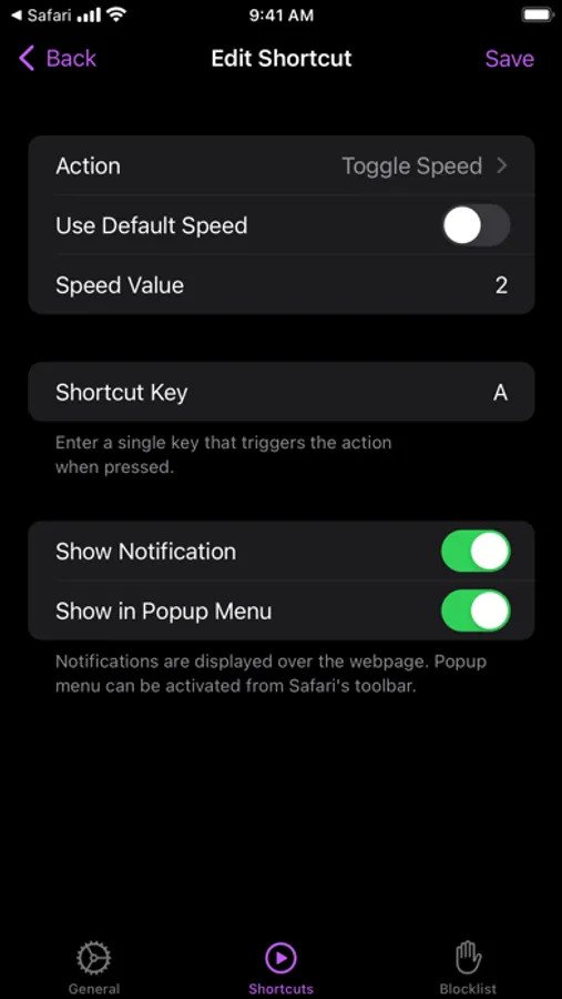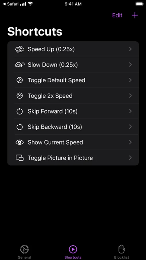 • Create customized shortcuts to play/pause, skip, adjust speed, mute, and toggle Picture in Picture