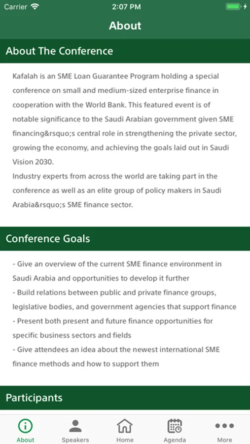 This app helps Kafalah's users to know more informations about Conference and help users to register on the event and provide them with informations about speakers and sponsors and how to go to the event , it also provide users with Conference Agenda and any news related to the Conference .