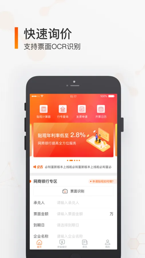 承兑贴现,用必知富!这里聚集了各大银行、金融机构的优质资源,帮助企业贴现、融资!