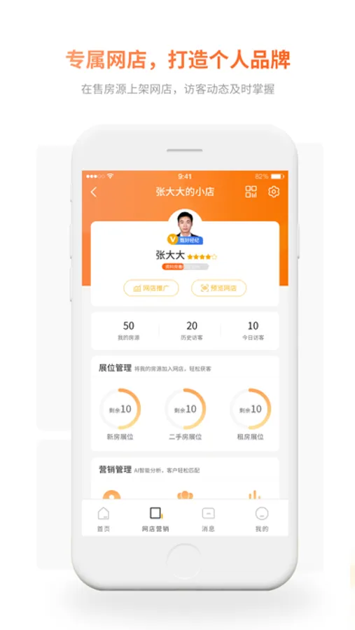 本应用集成房源订阅推送、房源管理、个人网店、获客分析等服务。