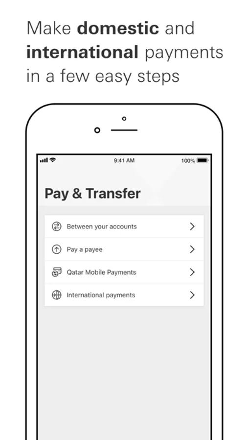 • Qatar Mobile Payments – send funds to other registered users using a mobile number or an alias. Alternatively scan a QR code to make a transfer to an individual, merchant or a government entity.