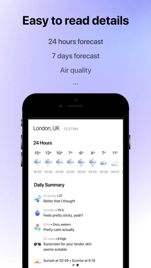 – Comprehensive Data: Stay updated with essential information such as temperature, humidity, and wind to help you plan your day better.