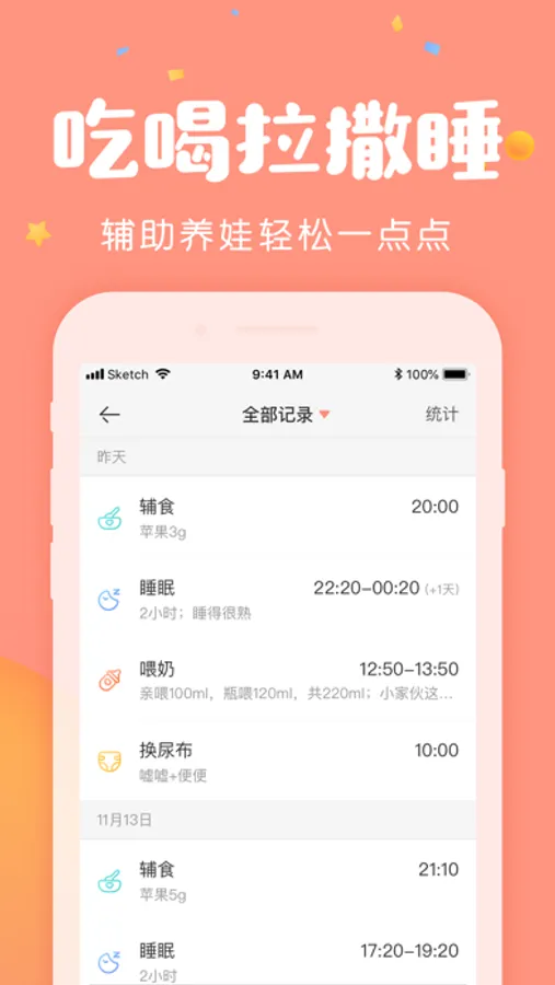分类记录宝宝的身高体重、疫苗接种、吃喝拉撒睡、宝宝档案。
