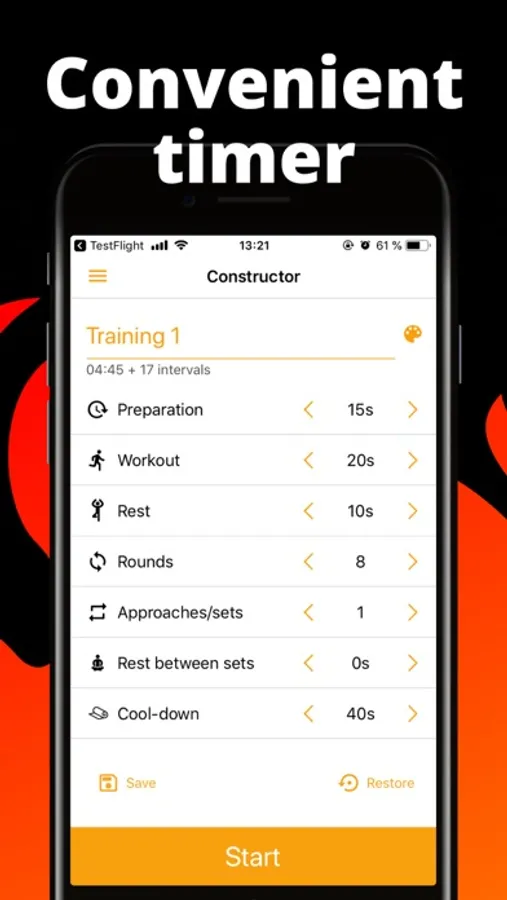 This timer will help you complete your scheduled workouts with a sense of pride in yourself. And if you are a coach, then save all the necessary workouts in the application and use the timer as a tool at work.
