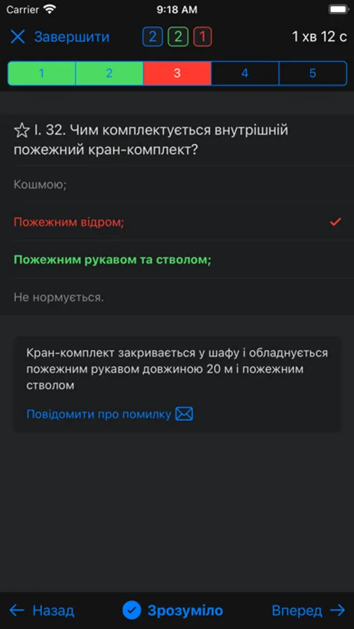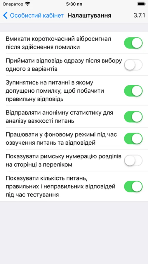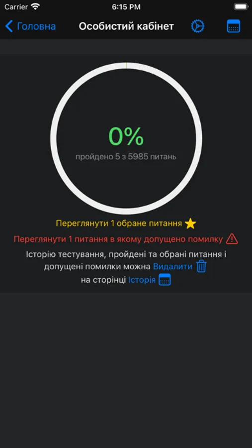 - Можливість додавання питань в "обрані" та проходження по них окремого тестування;