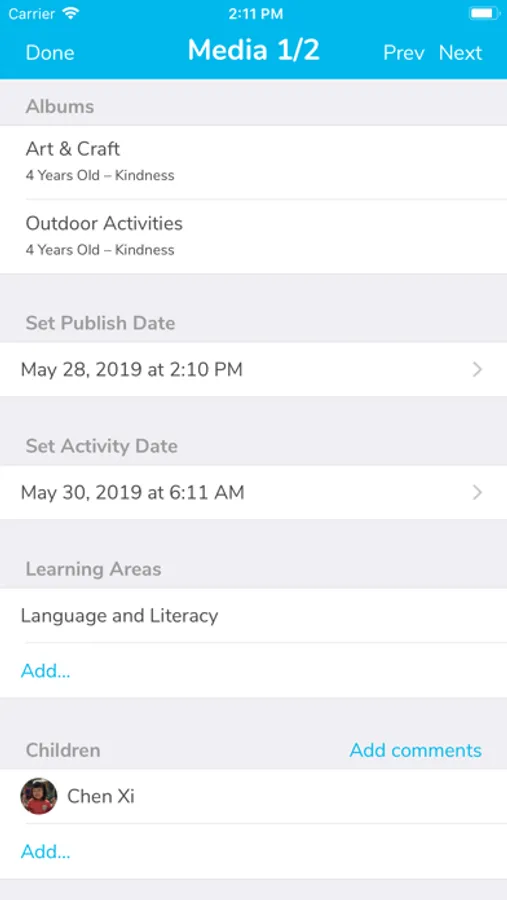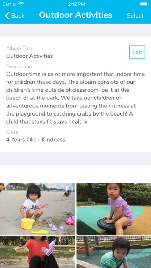 • Create albums to organise media in a customised way – name albums after learning areas, special events, tag a class, and add descriptions to the albums!