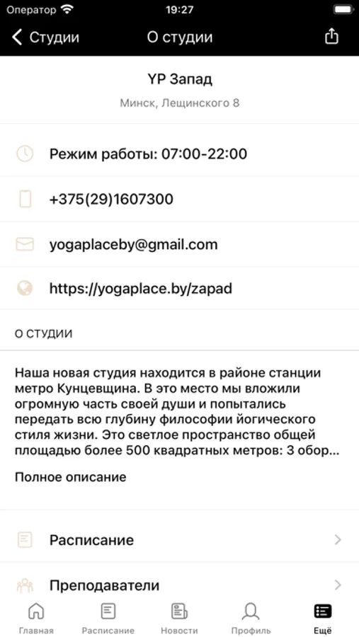 С помощью приложения вы можете следить за расписанием занятий и новостями студии, оперативно получать информацию об изменениях в расписании