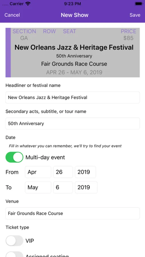 Soundex is a place where you can keep track of all the concerts and festivals you've gone to. Ticket stub collections are thinning out - most tickets these days are digital. With this app, you can see all the shows you've been to, and show your friends that you've been to the most Grateful Dead shows of all of them.