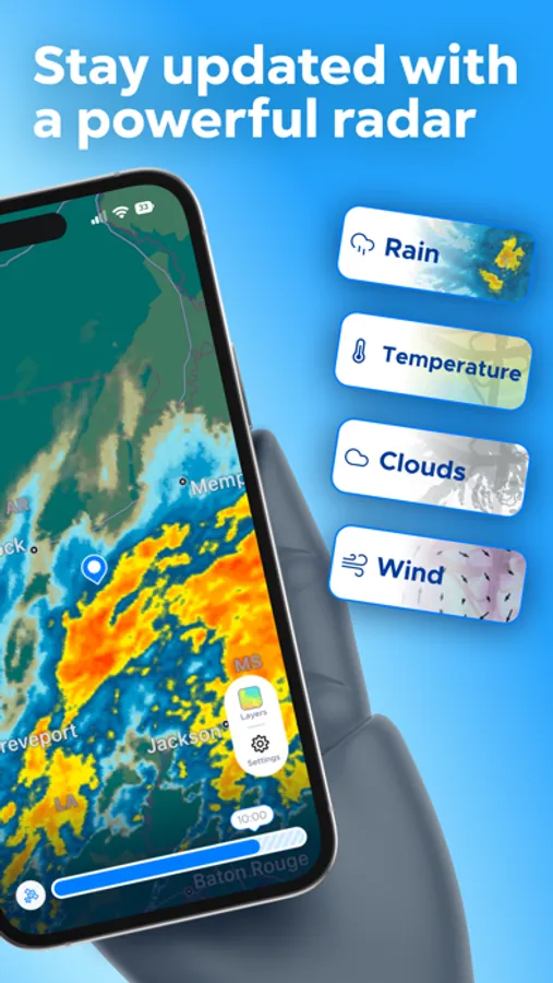 With live weather forecasts from leading providers, Overdrop Weather ensures you never get caught in a storm. Rain or shine, our comprehensive weather reports give you instant access to weather data such as temperature including ‘feels like,’ wind speed, rain, hail, snow, the UV index, cloud cover, pressure, humidity, and visibility.