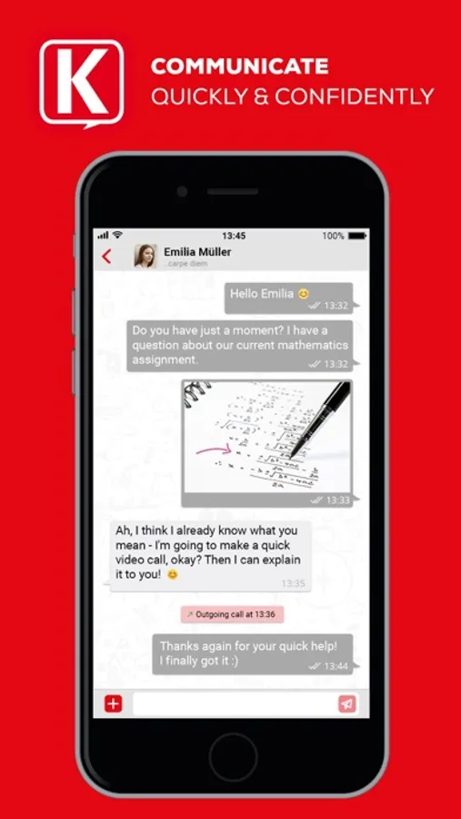 An efficient communication between all participants of a school is the starting point for a target-oriented way of working. KIKS chat combines the usual chat functionalities with your own cloud storage into a data protection compliant and secure communication platform - GDPR compliant. KIKS chaz offers a contemporary way of communication for schools and is subjected to a strict privacy policy. Communicate easily, quickly and securely within the company– with KIKS chat