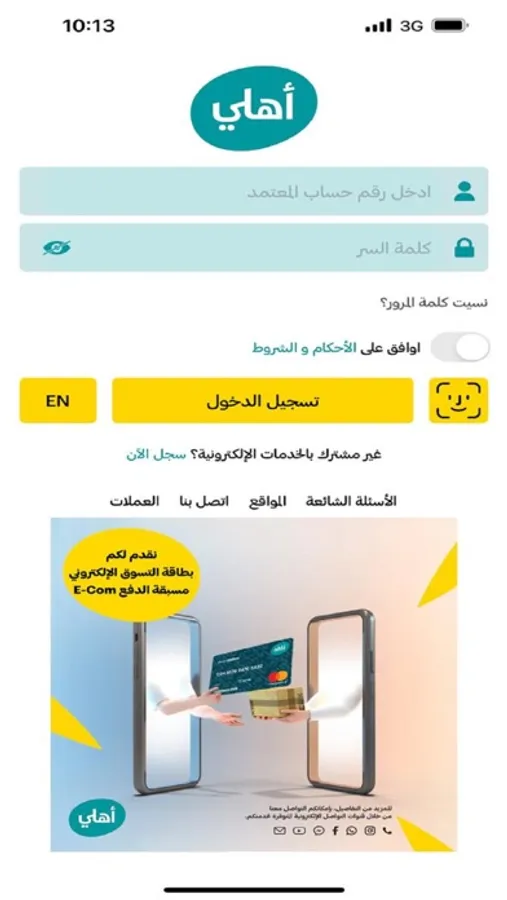 Al Ahly Mobile is a unique banking service that offers many banking services such as bank account inquiries, financial transfers between your accounts and other Ahli Bank customers, applying for a loan, paying bills or finding your nearest branch.