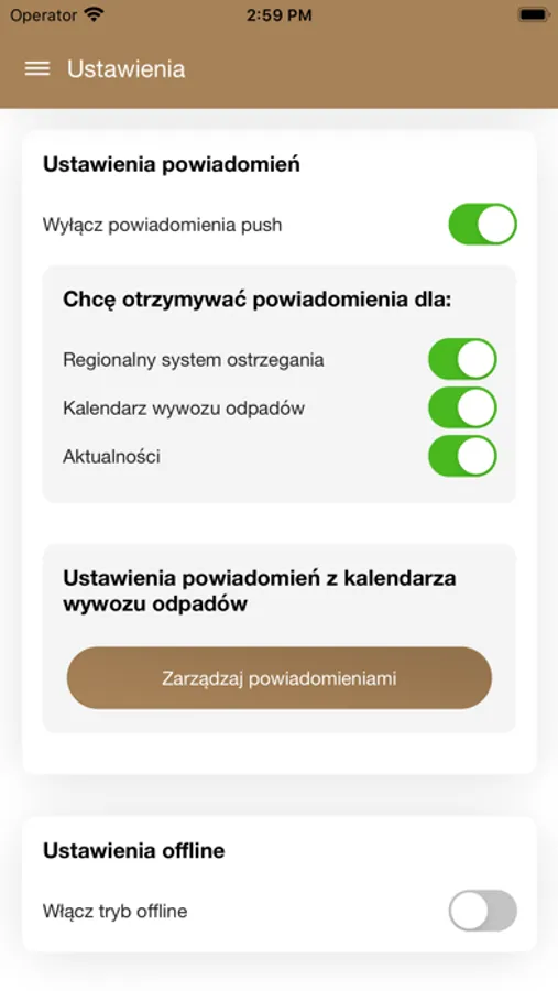 - systemu powiadomień push, abyś mógł otrzymywać ostrzeżenia kryzysowe, przypomnienia o wystawieniu pojemnika z odpadami czy powiadomienia o ważnych aktualnościach