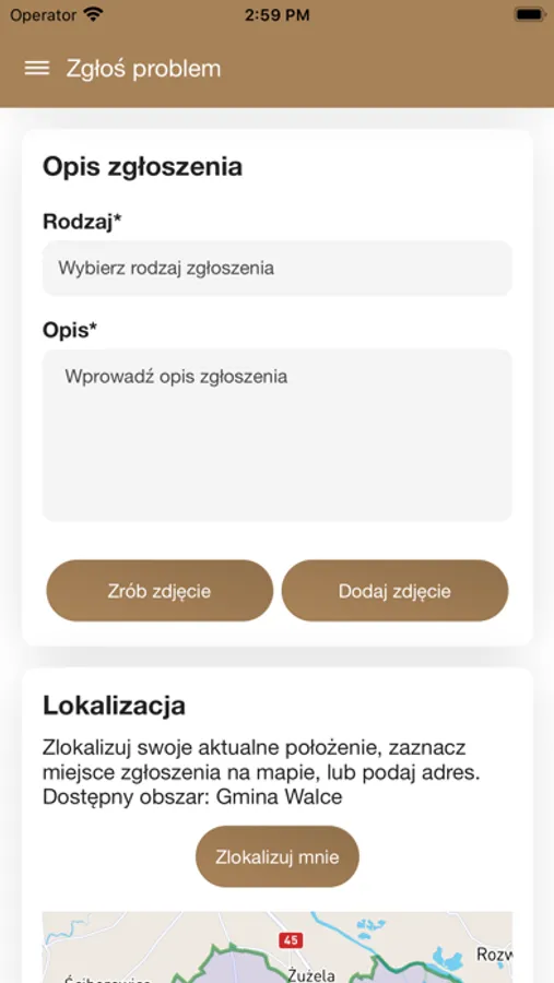 Aplikacja w bardzo prosty sposób pozwala na zgłaszanie różnych problemów czy usterek.