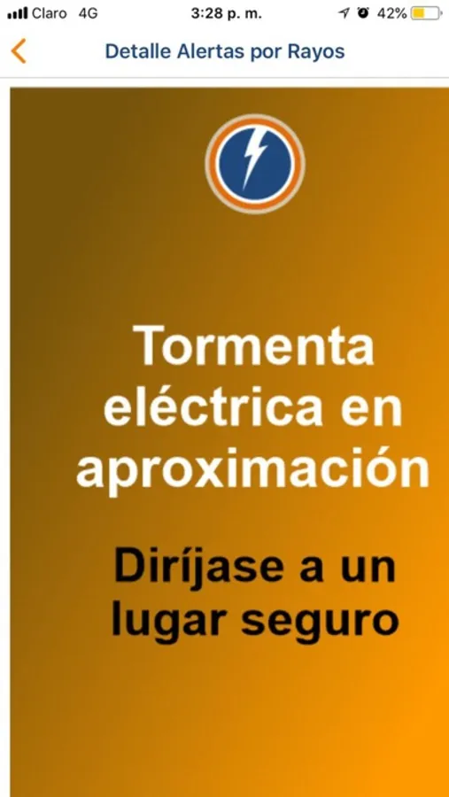 Esta aplicación le avisa de el riesgo por rayos en un punto determinado. Tiene la posibilidad de monitorear cualquier un punto fijo o seguir al usuario del dispositivo móvil a dónde vaya. En el momento en que hay riesgo, la aplicación notifica y así las personas pueden buscar un lugar seguro en dónde refugiarse. Así mismo la aplicación avisa cuando es seguro retomar las actividades al aire libre.