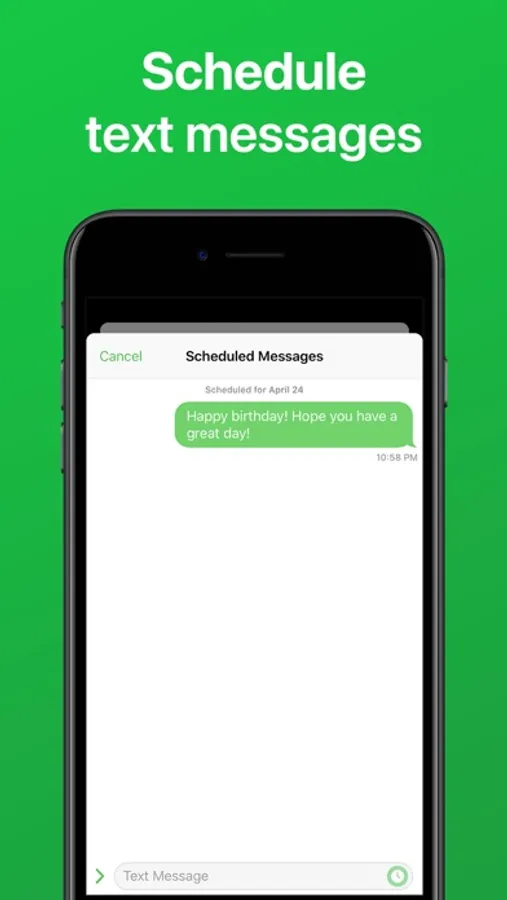 Need to follow up with someone at a later point? Schedule messages through the app to automatically send texts at a certain time. You'll receive a push notification once your message has been sent.