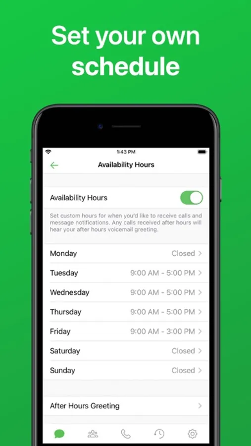 Set the hours when you want to get notifications. Calls received outside the specified hours will be sent to your voicemail.