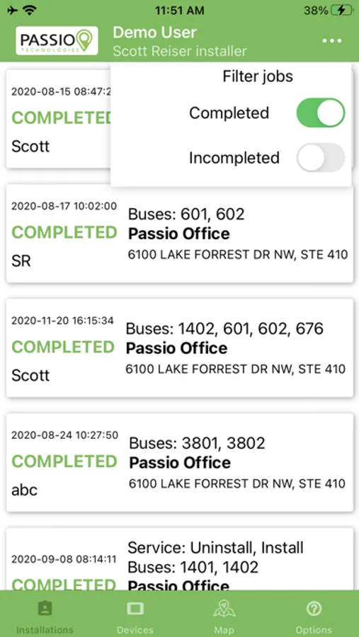 Maintenance, installation and vehicle inspections for operators that use Passio Technology transit solutions. This allows users to see the status of installed devices and complete pre-trip vehicle check list.