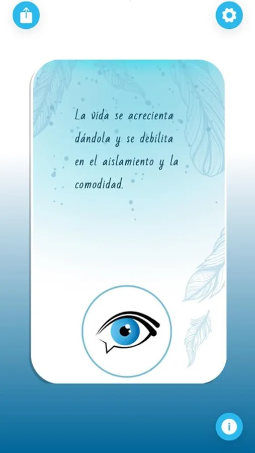 It appears many closed envelopes that when you push the button at the centre or upon moving your cellphone, they start passing by quickly and they stop when they find the best message for YOU. You can repeat many times this option, and use the application so that at least once a day you can receive one Word.