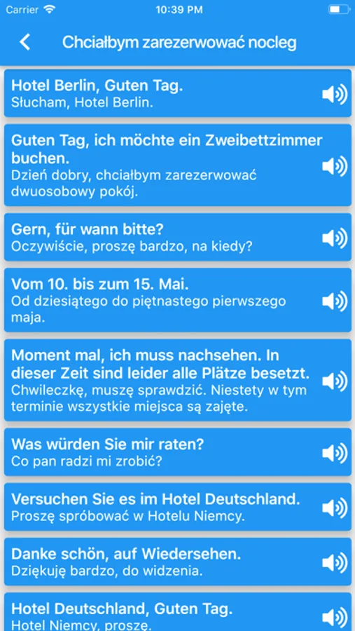 Rozmówki Niemieckie zawierają przydatne dialogi, frazy, zwroty, wyrażenia i słowa używane na co dzień w języku niemieckim. Rozmówki niemieckie pogrupowane są według tematyki - wybierz dowolną kategorię lub skorzystaj z wyszukiwarki i znajdź szybko potrzebne zdanie lub wyraz. Apka na urządzenie mobilne wyświetla niemieckie i polskie znaczenie. Możesz wykorzystać rozmówki jako słownik niemiecki, podręcznik do nauki języka niemieckiego lub po prostu pomocny program do użycia w podróży biznesowej lub w ramach wyjazdu na wakacje.
