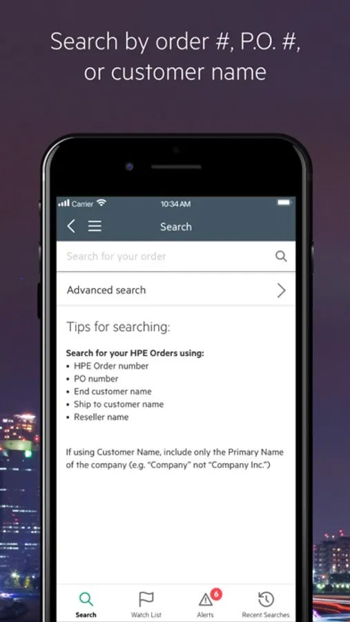 – Search for orders by HPE Order #, PO #, End customer name, Sold to customer name, Reseller name.