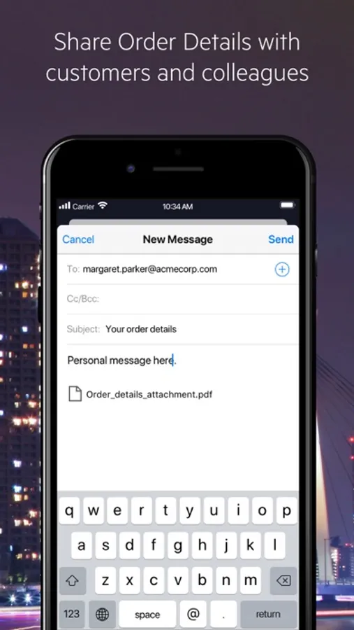 –Easy status sharing – email updated order details to colleagues or customers with the push of a button