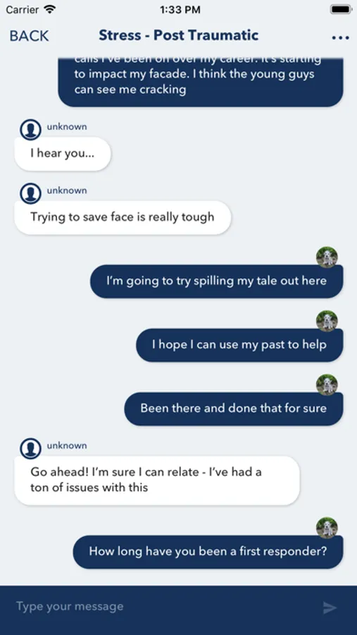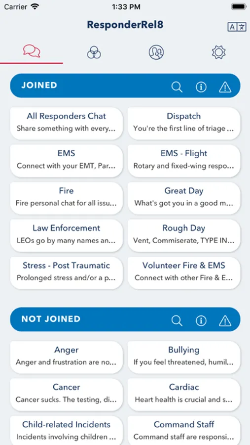 -Confidentially chat with other First Responders about topics that are meaningful or unique to your professions.