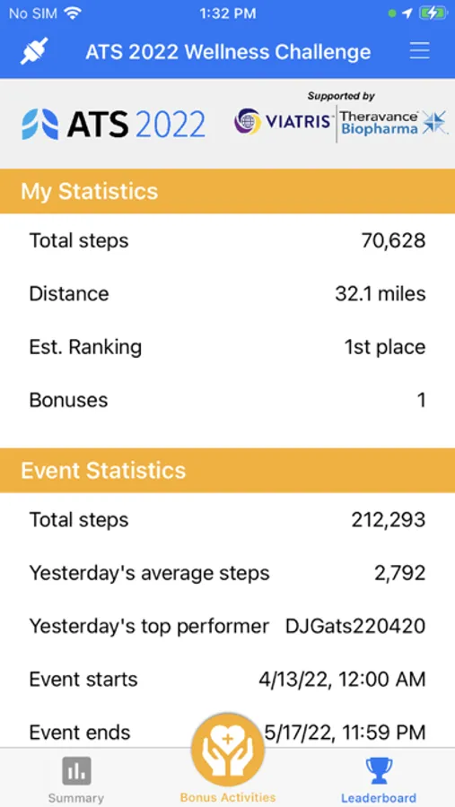 App supporting the American Thoracic Society's Wellness Challenge, supported by Viatris. The Walking Challenge will be held during ATS 2022 held May 13 - 17 2022 in San Francisco CA.