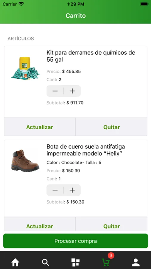 - Suministros para limpieza y control de derrames: pads, rollos absorbentes o barreras