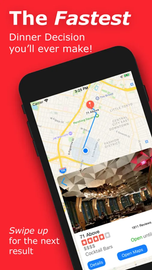 Deciding where to eat can be stressful. With so many places to choose from, it can be overwhelming to scroll through hundreds of options. With a simple swipe Dining Decider cuts through all the information and provides you a great restaurant recommendation instantly! Whether you’re traveling abroad or just around town, Dining Decider will be there to pick a local favorite and show you just one option at a time.
