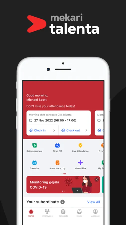 The employee can take control of their own HR tasks with Talenta mobile app. This app makes it easier for the employee to request time off, change attendance/shift. or even completing their personal data.
