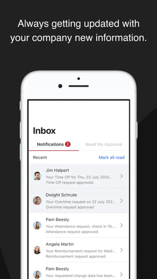- Push notifications to keep you in the loop on the status of your requests