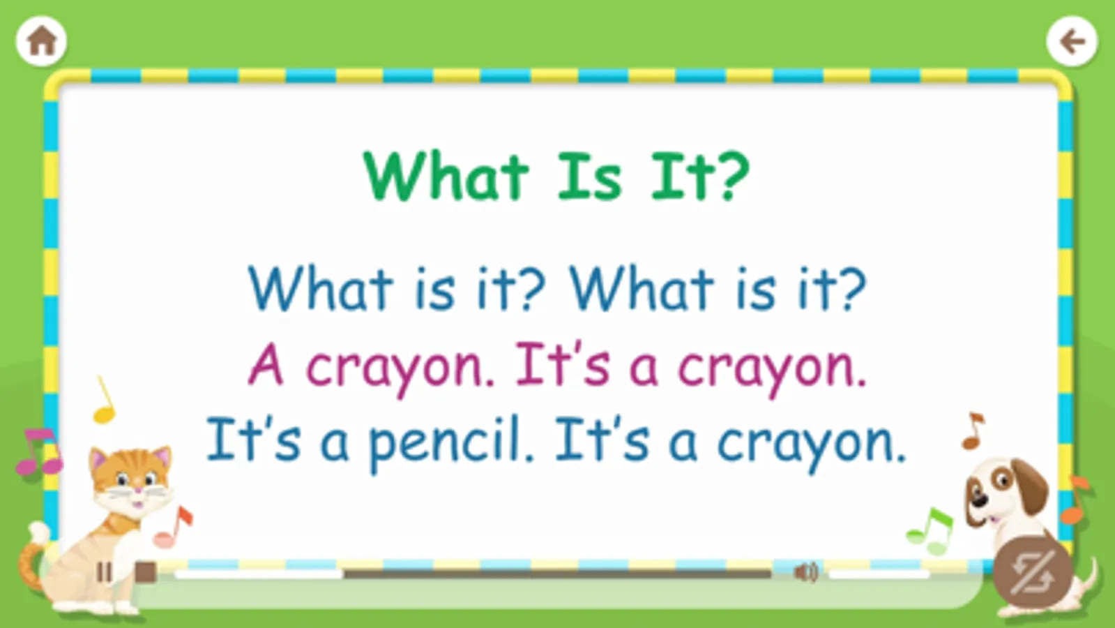 2. Song (Starter 1 and 2): Learning with animations and joining along with songs