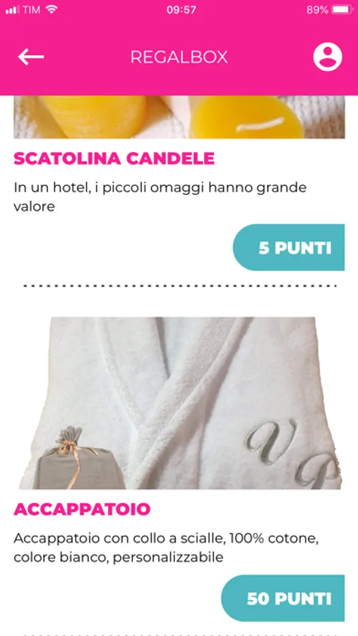 Interagendo con l'applicazione, potrai guadagnare punti durante la tua permanenza in Hotel e riscattare bellissimi premi all'interno della regal-box.