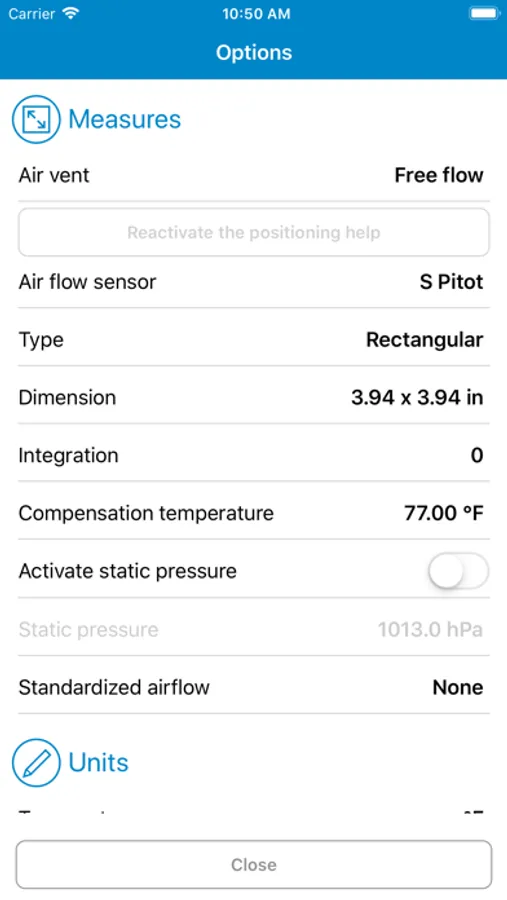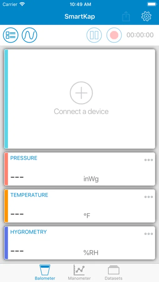 The SmartKap app allows the user to review measurements of airflow, temperature, humidity, atmospheric pressure and differential pressure in real-time via a compatible mobile device. This data is transmitted via Bluetooth® 4.2 low consumption to connected devices within a range up to 30 meters (98 ft).