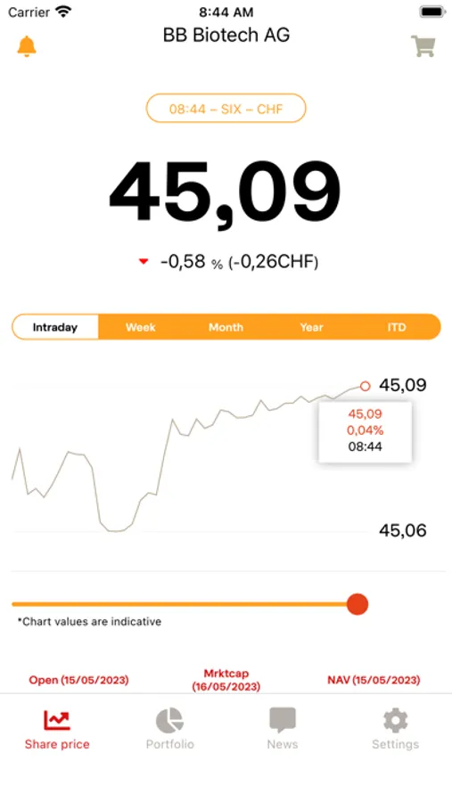 - Indicative real-time prices of BB Biotech shares