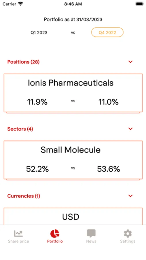 - Current portfolio composition