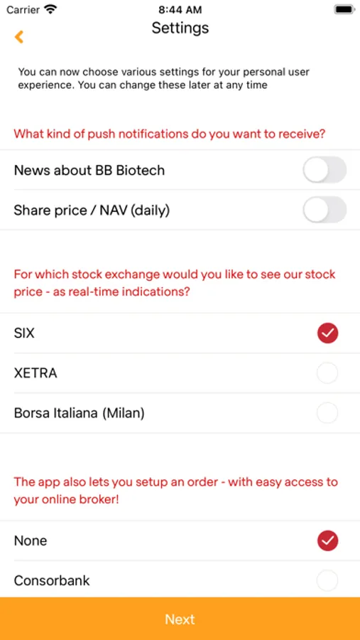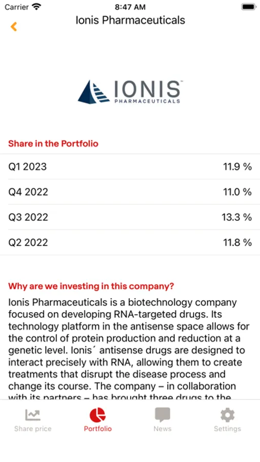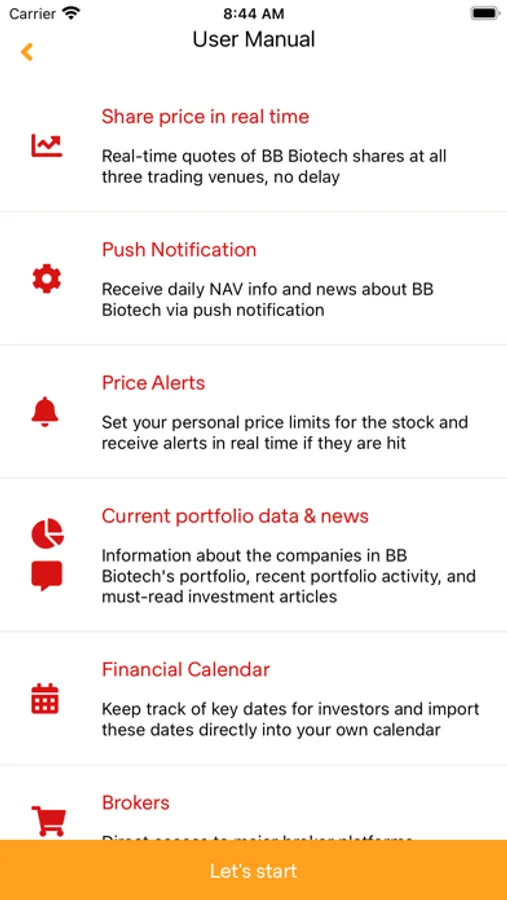The BB Biotech app gives you access to BB Biotech's indicative real-time share price in every market where it's traded, information about its portfolio, and news about the biotech sector. You can also study BB Biotech's portfolio in detail and set your own buy or sell limit orders. The app helps you to evaluate the performance of your investment in BB Biotech or simply check its current Net Asset Value (NAV). All that with just a few clicks and at any time, no matter where you are.
